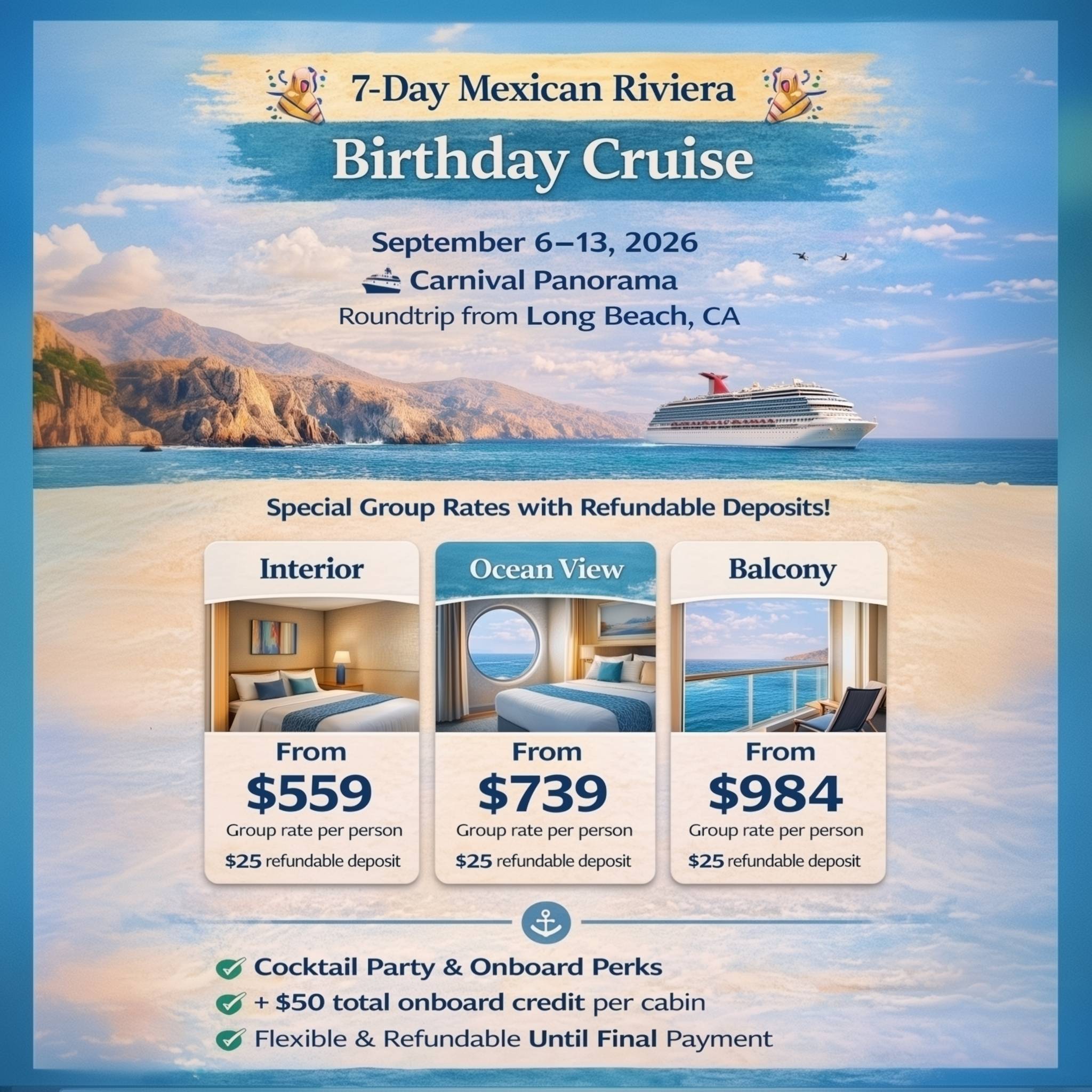 I truly love sailing out of Long Beach, it’s easy, friendly, and full of budget-friendly cruise dates over the next few months. If you’d like updates on deals and future travel plans, feel free to subscribe.
